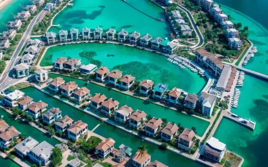 A high-end waterfront community by Damac featuring 4–7 bedroom townhouses and villas, with lagoons, wave pools, private beaches, water‑centric amenities, and a central aqua dome.